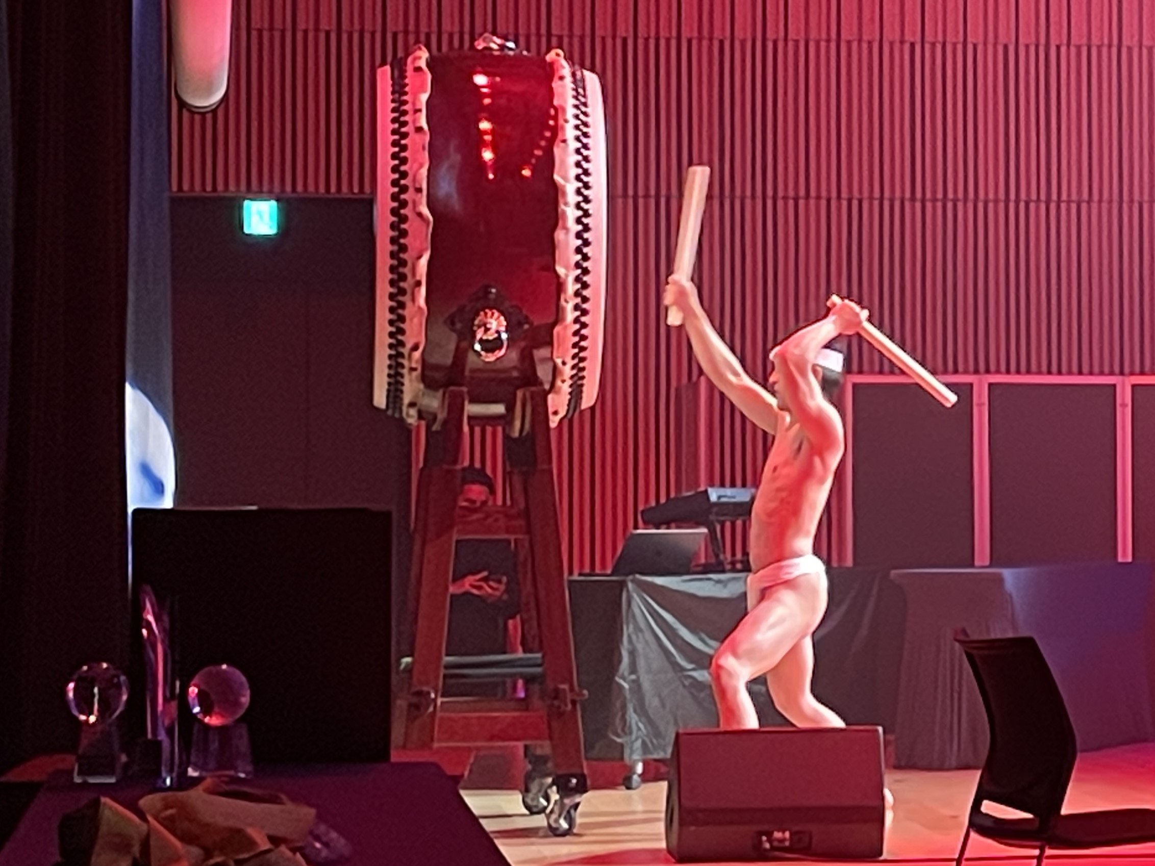 東京都内で行われた美容系イベントのオープニング演奏に大太鼓の一本打ち、アトラクションに和太鼓と津軽三味線のコラボレーションのご依頼をいただきました。